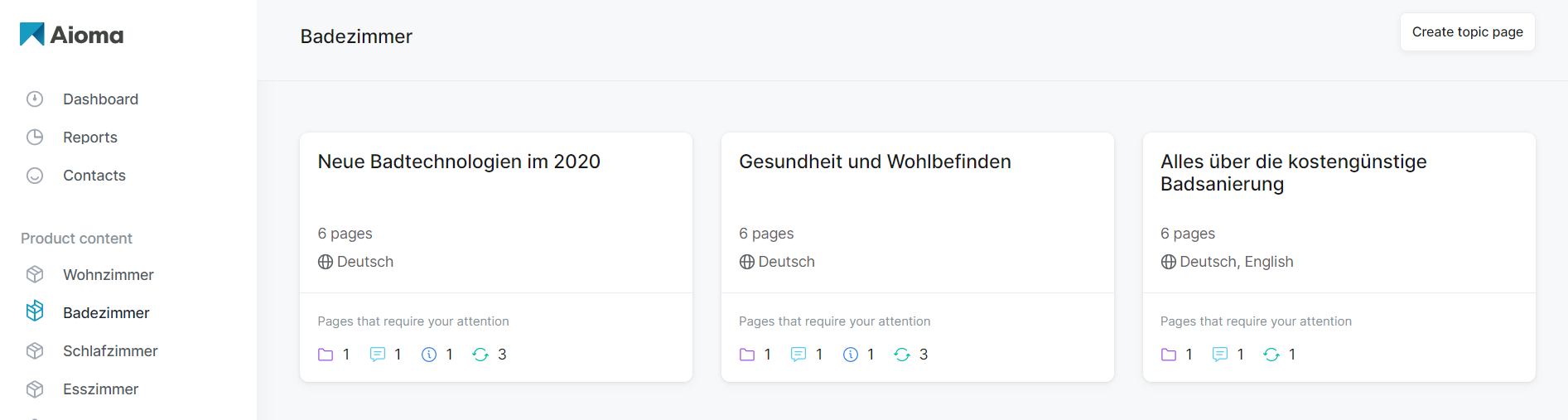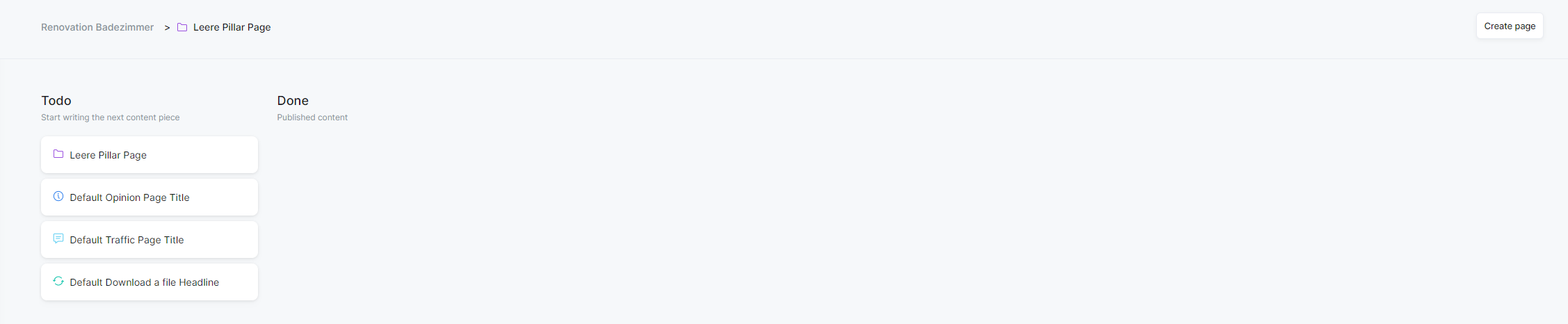 Tip: Erstellen Sie zuerst die Unterthemen Seiten (Subpages) und deren Titel bevor sie die Pillar Page (Themenseite) fertigstellen. Der Inhalt der Unterthemen Seiten muss nicht sofort ergänzt werden. Dies hilft Ihnen während der Erstellung der Pillar page, jede "Connected page section" zu einer vorhandenen Unterthemen Seite zu verknüpfen, ohne dass eine Seite vergessen geht oder Sie wieder zurück zur Pillar Page Optimierung müssen wenn die Unterthemen Seiten geschrieben sind.